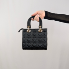 La elegancia clásica se encuentra con el romanticismo moderno. Este bolso de estructura rígida y formato cuadrado (box bag) rinde homenaje a los iconos de la moda, pero con un giro dulce: su textura acolchada dibuja un patrón de corazones en relieve en lugar de los rombos tradicionales. Confeccionado en efecto piel color negro y rematado con herrajes dorados en las asas, es el complemento perfecto para elevar un look de invitada o dar un toque chic a unos vaqueros. Se lleva cómodamente de la mano gracias a sus asas cortas redondeadas.