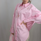 Reinventa el básico de armario con esta camisa de corte masculino (boyfriend) cargada de destellos. Su diseño holgado y relajado en tejido de popelín se eleva gracias a las aplicaciones de strass brillante dispersas por el frente, con formas de corazones y letras. Disponible en los dos colores pastel del momento: azul cielo y rosa bebé. Es la prenda ideal para quienes buscan el equilibrio entre la comodidad de lo «oversize» y el glamour de los brillos. Perfecta para llevar cerrada, abierta como sobrecamisa o semi-metida por la cintura.