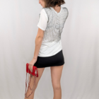 • Cuerpo Rectangular: La textura de la red aporta una dimensión tridimensional sobre prendas planas (como la camiseta de algodón), creando interés visual y rompiendo la rectitud del bloque superior.