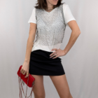 Eleva tus básicos al instante con este top de red estilo cota de malla. Diseñado como una pieza de superposición (layering), se sitúa a medio camino entre una prenda y una joya XL. Presenta una estructura de red plateada con pequeños destellos metálicos y un favorecedor escote en V. Es el accesorio definitivo para transformar una camiseta blanca sencilla en un look de impacto, aportando textura, brillo y un aire grunge-glam muy actual. Perfecto para llevar sobre camisetas, vestidos ajustados o incluso sobre la piel en festivales.