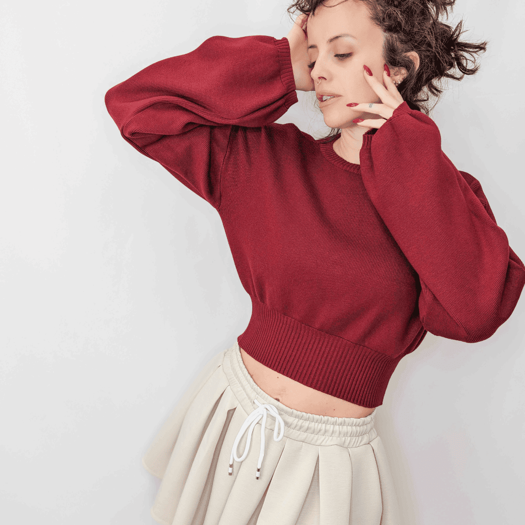 Falda de punto, de tubo de corte limpio y talle medio-alto. Su silueta estiliza y aporta una elegancia profesional que funciona tanto en reuniones como en eventos. Un básico atemporal que realza la figura sin perder comodidad.